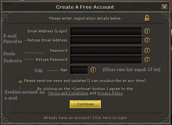 3.Pokud jste na runescape poprvé měla by se vám automaticky ukázat registrační tabulka.